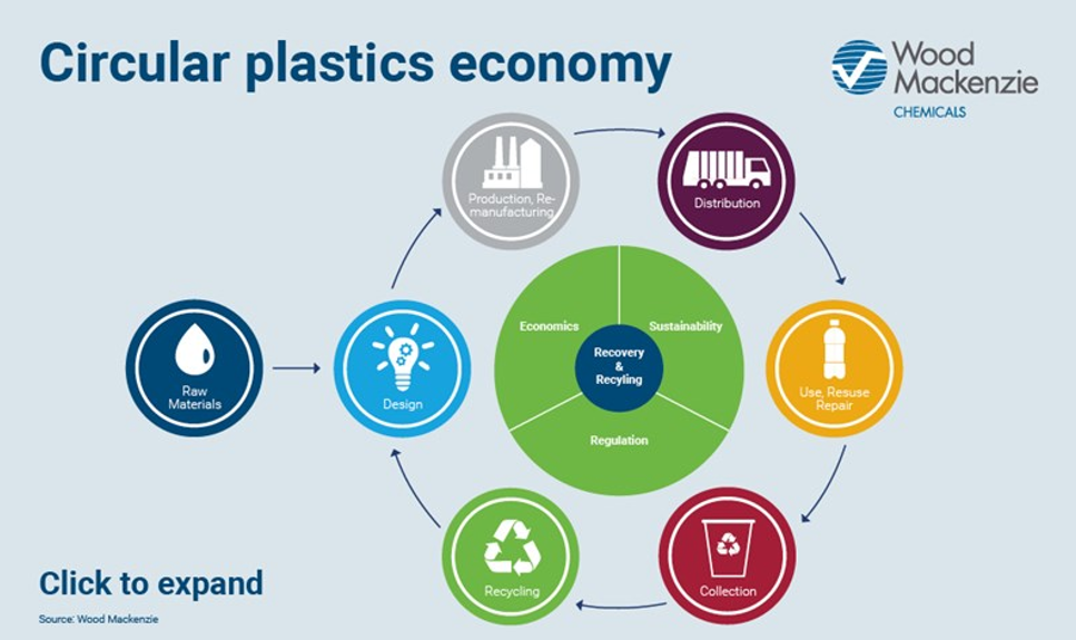 The circular plastics industry is centered around transforming the traditional model of plastic use that usually ends in the landfill into a sustainable circular economy. This involves designing plastics and plastic products to eliminate waste and pollution, to be reused, recycled, or composted, and to keep materials circulating at their highest value for as long as possible. The goal is to reduce reliance on raw materials, lower plastic pollution, minimize carbon emissions, and create long-term resource efficiency. The focus is also looking at alternatives to traditional raw materials such as fossil fuels while at the same time balancing society’s dependence and reliance on plastics for survival.